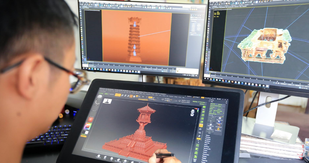 Dựng không gian 3D mô phỏng bối cảnh văn hóa, scan hiện vật, tạo hiệu ứng AR, 3D animation và VFX để tăng chiều sâu trải nghiệm, giúp người xem cảm nhận sinh động giá trị văn hóa